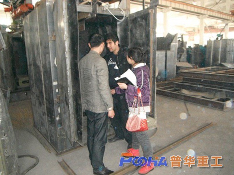 伊朗客戶Mr.Mohammad于2012年4月中旬,專程來我廠洽談Q69與Q38系列拋丸機的訂購事宜圖為客戶參觀我廠車間,我廠相關(guān)工作人員正向客戶介紹機器情況