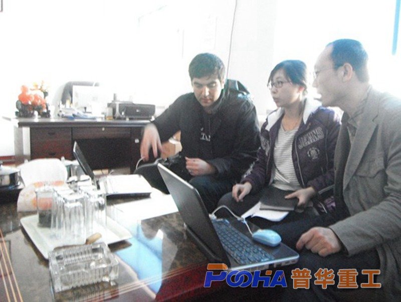 圖為客戶與我廠技術(shù)人員交流機器情況